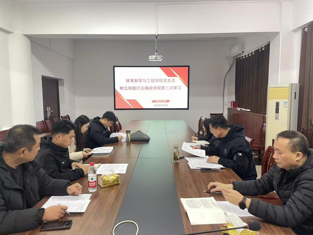 3月23日上午,体育科学与工程学院在田径场207会议室开展树立和践行正确政绩观第二次学习。会议由学院党总支书记段爱明主持,学院党总支全体成员参加学习。